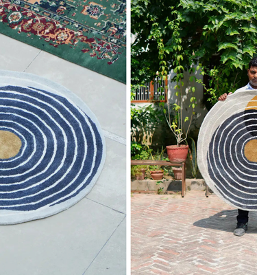 Thoughtfully hand tufted and made fresh, Helios is ideal for enhancing flooring in open layouts, reading nooks, or any living room in need of personality and warmth. Its round shape brings softness to angular spaces, making it a favourite among contemporary carpet designs for living room spaces.
